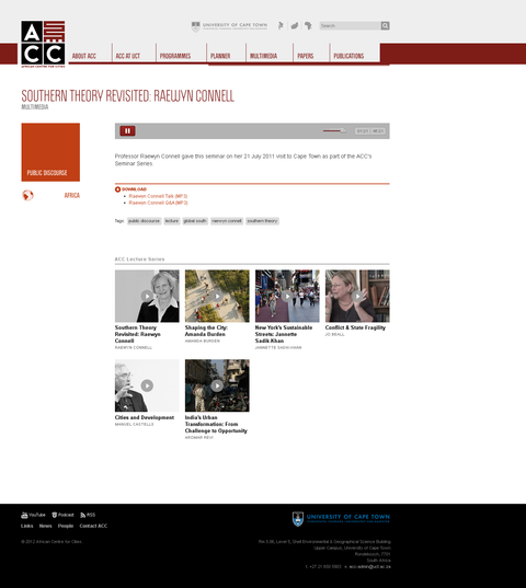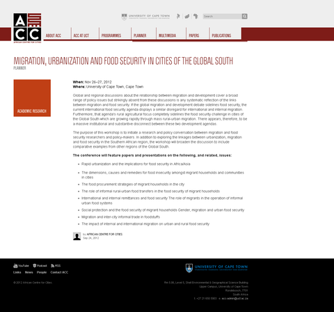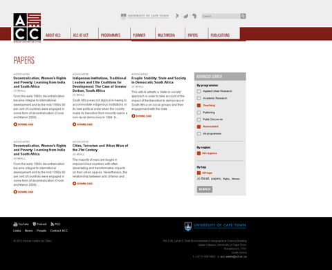 The African Centre for Cities is an interdisciplinary research and teaching programme focussed on quality scholarship regarding the dynamics of unsustainable urbanisation processes in Africa, with an eye on identifying systemic responses.